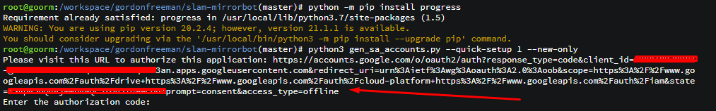 python -m pip install progress python3 gen_sa_accounts.py --quick-setup 1 --new-only