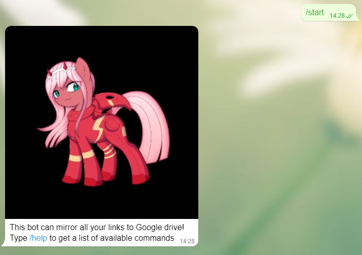 17) Let's chat with the bot. Send /start to the bot. (or your own start command if you change it from bot/helper/telegram_helper/bot_commands.py)